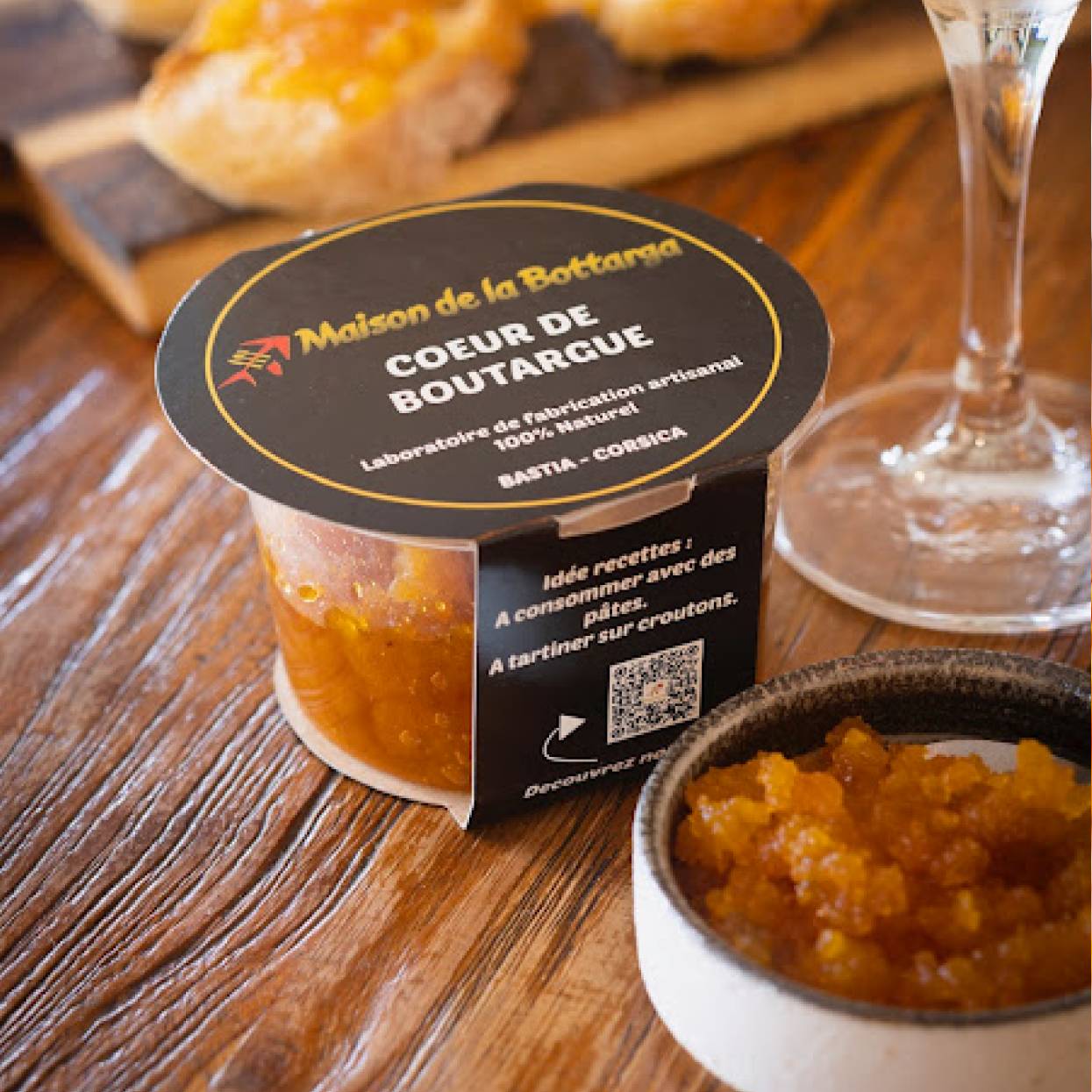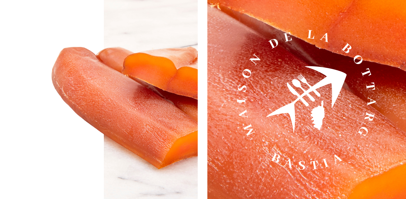 La poutargue artisanale de À la Bottaga à Bastia est une spécialité corse d’exception, souvent appelée le « caviar bastiais ». Élaborée à partir d’œufs de mulet (Mugil cephalus) salés et séchés selon un savoir-faire traditionnel, elle offre une saveur iodée intense et une texture fondante.